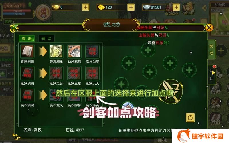 优先升级主动技能:如剑气纵横、剑决等,这些技能是剑侠的主要输出手段,升级后能显著提升伤害。