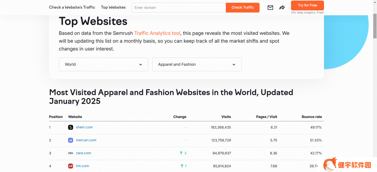 在服装与时尚电商领域,一场悄然的变革正在全球范围内上演。据Semrush最新数据显示,截至今年1月,SHEIN(shein.com)凭借其惊人的访问量,成功登顶全球服装及时尚购物网站的榜首,其月访问量甚至达到了紧随其后的ZARA网站的两倍之多,而Mercari则紧随其后,位列第二。