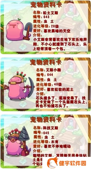 进化:从松土艾斯开始,通过不断升级和进化,可以逐步获得其更高级的形态(如艾斯小酷、科技艾斯)。