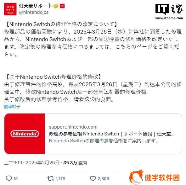Joy-Con手柄的维修费用同样未能幸免,从2200日元上涨至2860日元,按当前汇率计算,大约增加了139元人民币的维修成本。而任天堂Switch Pro控制器的维修费用调整情况,尽管未在公告中明确提及具体数字,但预计也将有所增长。