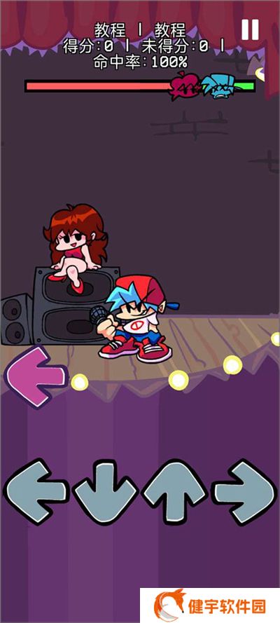 3、点击按键:注意观察下落的方向键与屏幕下方的按钮重叠时,及时点击正确的按钮。精准的操作会让你获得更高的分数。
