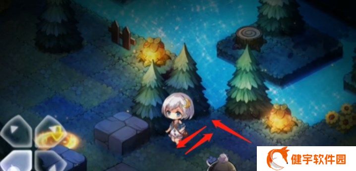 2、首先需要慢慢的往前走,来到最前方的树墩前面,这里需要注意一下要一走一停。